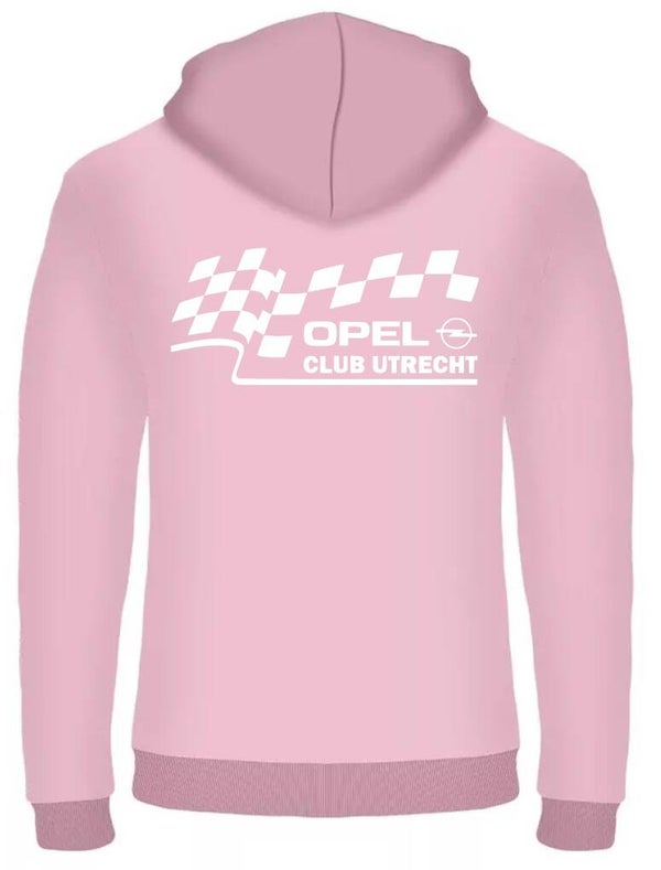 Rose dames hoodie met logo "Opel Club Utrecht" op borst en rug